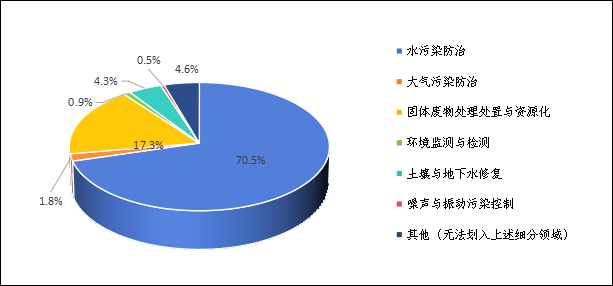 列入統(tǒng)計范圍環(huán)保企業(yè)主要分布于水污染防治、大氣污染防治等七個細分領域。以水污染防治為主,見圖7,該領域企業(yè)數(shù)量占比70.5%,貢獻八成以上行業(yè)營業(yè)收入以及七成以上的環(huán)保業(yè)務收入。